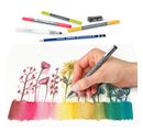 Discover the fascination of colours and their interplay. The set contains the perfectly coordinated colours for a colourful flower meadow. With the water-thinnable brushpens and the water brush, unique color gradients are created. Give free rein to your creativity and create individual works of art.