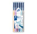 The STAEDTLER triplus 1.0 felt-tip pens "Hygge" pencil set consists of 6 felt-tip pens in a practical stand-up box. The line thickness of approx. 1.0 mm allows fine lines. The ink is water-based and can be washed out of most textiles. The triangular shaft ensures relaxed writing.