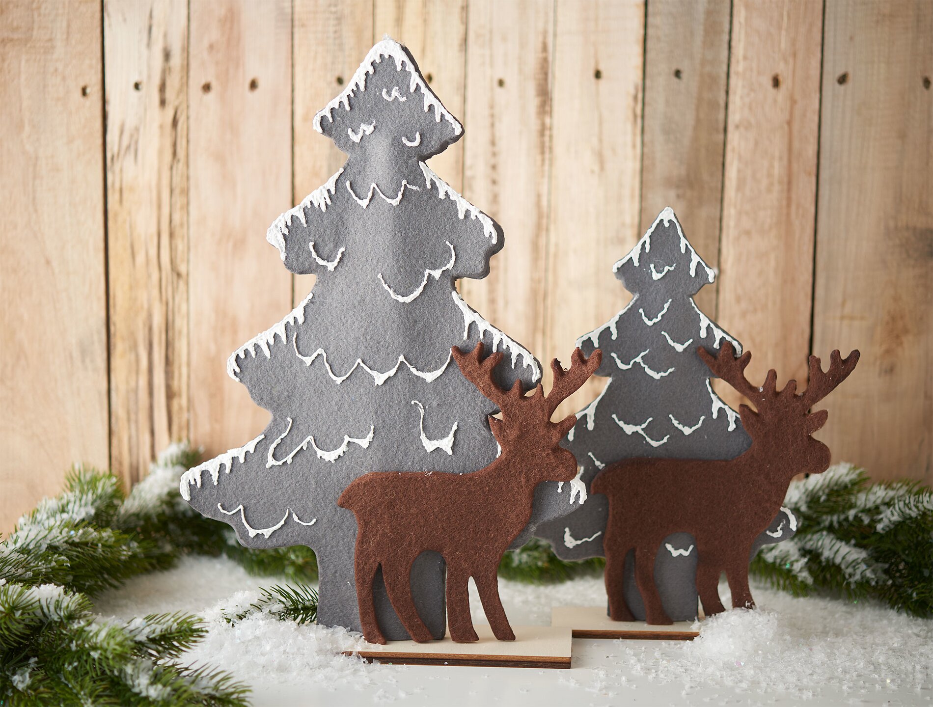 The motif template consists of Fir and reindeer. Copy both motifs. Transfer the Fir twice on the grey Felt, the reindeer on the brown Felt sheet, cut out all motives.