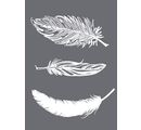 Beautiful and high-quality Silkscreen-Stencil "Feder Trio" in DIN A5 Form with Die Feathers have a width of about 11.2 cm and are about 2.7 cm, 4.5 cm and 5 cm high.