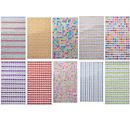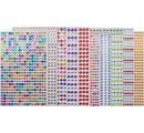 A colorful mix of rhinestone-Stone-stickers. The stickers are distributed on 10 cards with about 220 individual borders. The diameter varies between 4-6 mm. The stickers are self-adhesive.