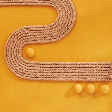 Once you have fixed the macramé cord in place, glue the painted wooden hemispheres onto the stretched canvas. Distribute them as desired to give your textured picture more depth and dimension.