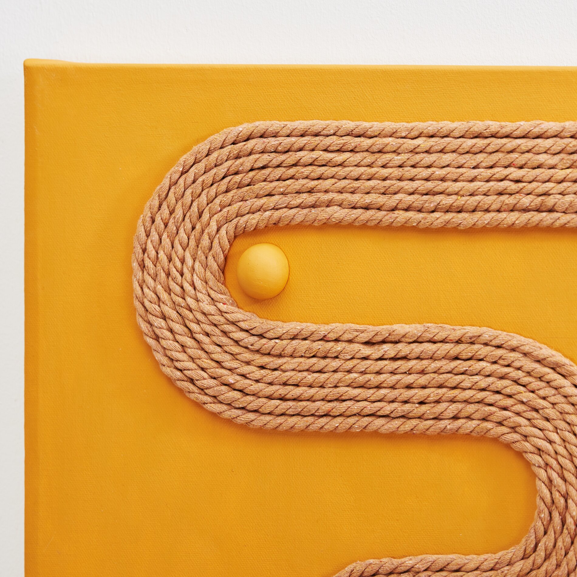 Apply the glue along the marked lines and position the macramé cord on top. Press the cord lightly so that it sticks well. You can also create different patterns and shapes to give your picture a special texture.