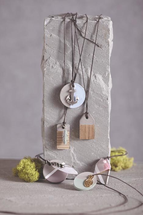 Not only the different casting moulds allow to design pendants very personal. Paint the pendants with Metallic Paint, with chalky paint or glue a part of the pendant with wood veneer or cork.