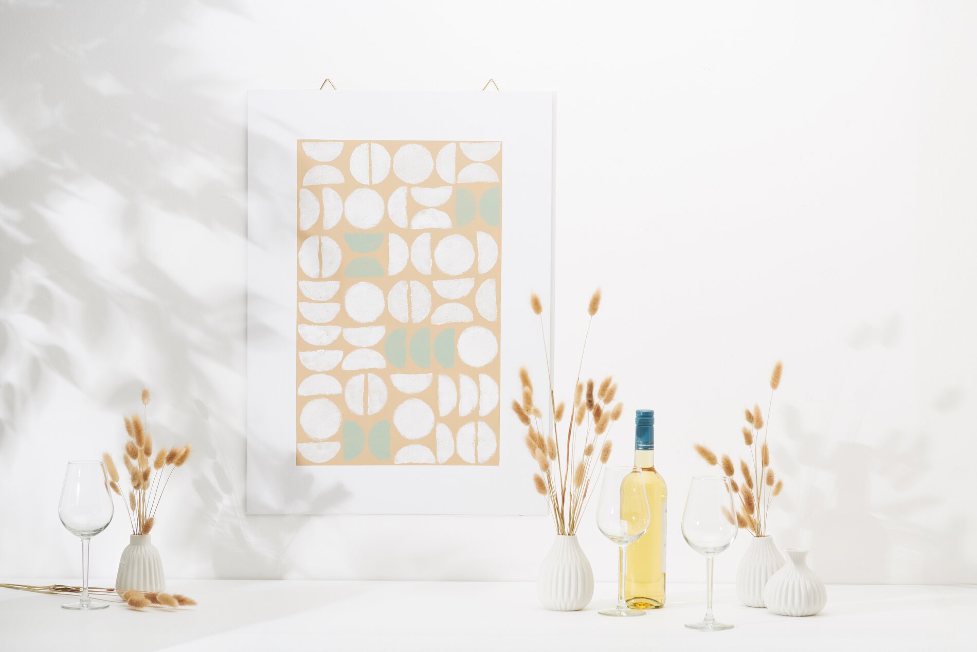 Discover here how you can create a stylish mural yourself in an ingeniously simple way with DIY Stamps yourself. You will need only painting board, some paint and painting sponges. Have fun stamping!