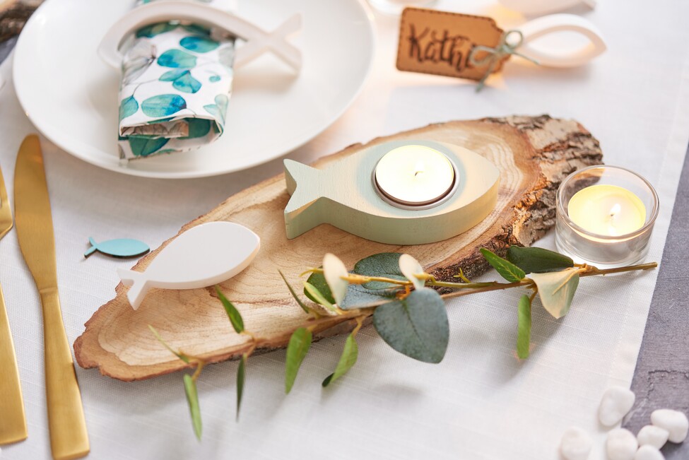 The stylish tealight holders and napkin rings made from decorative fish are guaranteed to turn heads at a communion, confirmation or christening. With our simple step-by-step instructions, you're sure to succeed.