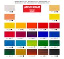 Talens AMSTERDAM Acrylic paint "General Selection 24" with 24 colours from the Standard Series and 20 ml each. These are high-quality acrylic paints in the colours titanium white, Neapel Yellow-dark, azo yellow-mediumNeapel Yellow Red, Azo Yellow Lemon, Primary Yellow, brilliant Vermilion, Pyrrol Red, Carmine, Primary Magenta, Permanent Red Violet, Permanent Blue Violet, Ultramarine, Primary Cyan, blue, Turquoise blue, Yellow Green,Permanent-Green-Bright, Permanent-Green- dark, Sap green, yellow Ochre, sienna burnt, Umbra Fired and Oxyde Black. One colour with a transparent to high opacity