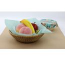 Through a heat treatment after application with a hot air gun or iron, TexWax draws into the fibres and transforms the material into a reusable and breathable film. It can be shaped by hand and put over a container, for example. A special kind of cling film.