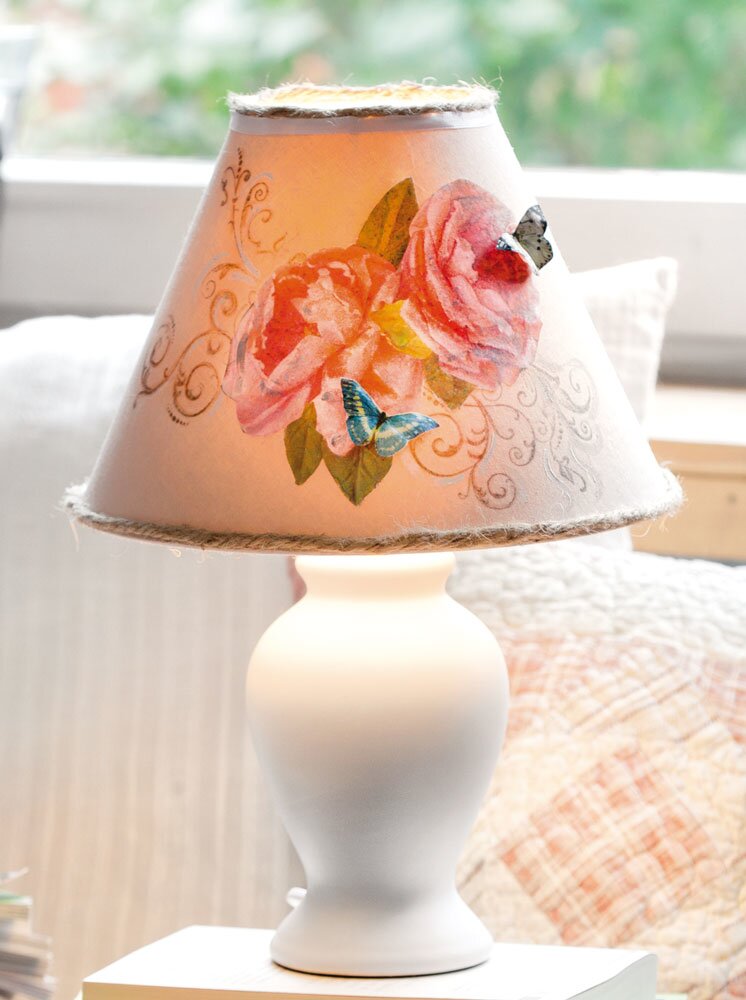 table lamp in country house style , the natural coloured fabric forms the basis for this decoration. The