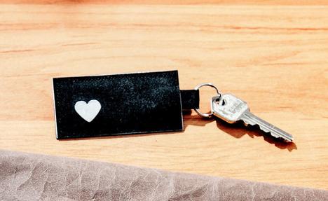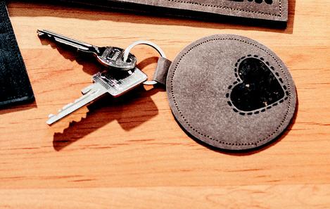 Pull small wooden beads on a black rubber cord and wrap this Ribbon around the case. This is not only a pretty decoration but also serves as a closure.