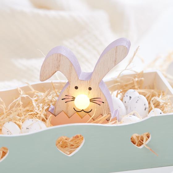 Once the paint is completely dry, fill the bowl with wood wool. This natural material creates a cozy nest look and forms the perfect basis for placing the bunny figurines in an appealing way. Arrange the bunnies as you wish so that they take up their new home in the "nest".