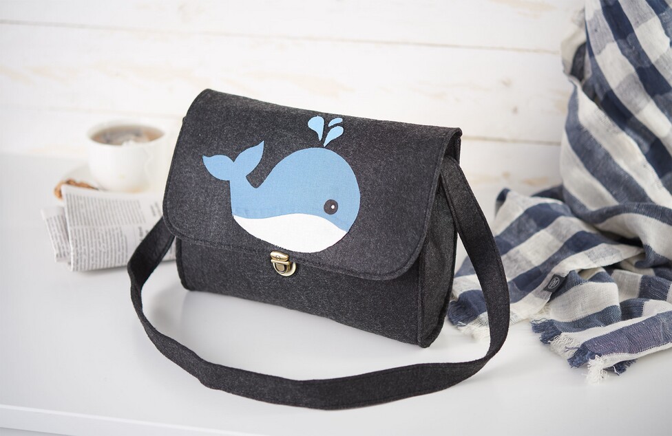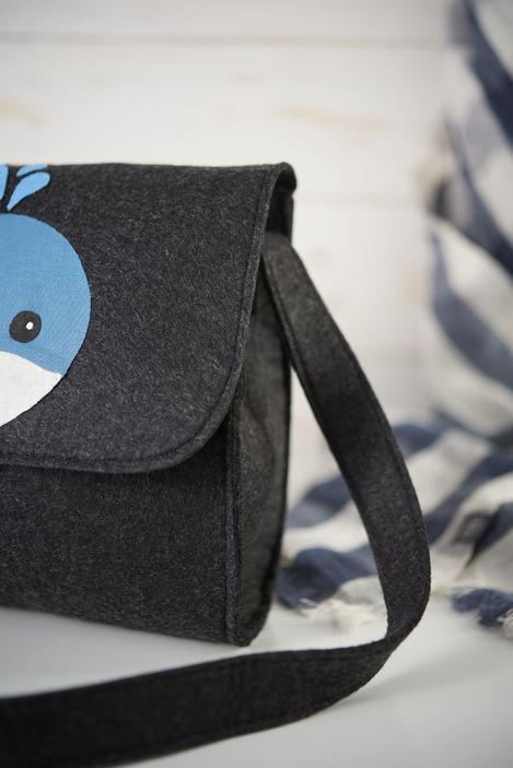 motif template "Whale", transfer the whale onto the screened side of the adhesive fleece that can be ironed on both sides. Cut the fleece roughly to size. Remove the backing paper from the blank side of the fleece and iron the fleece cut to the left side of the decoration fabric. The fabric and fleece can now be cut precisely.