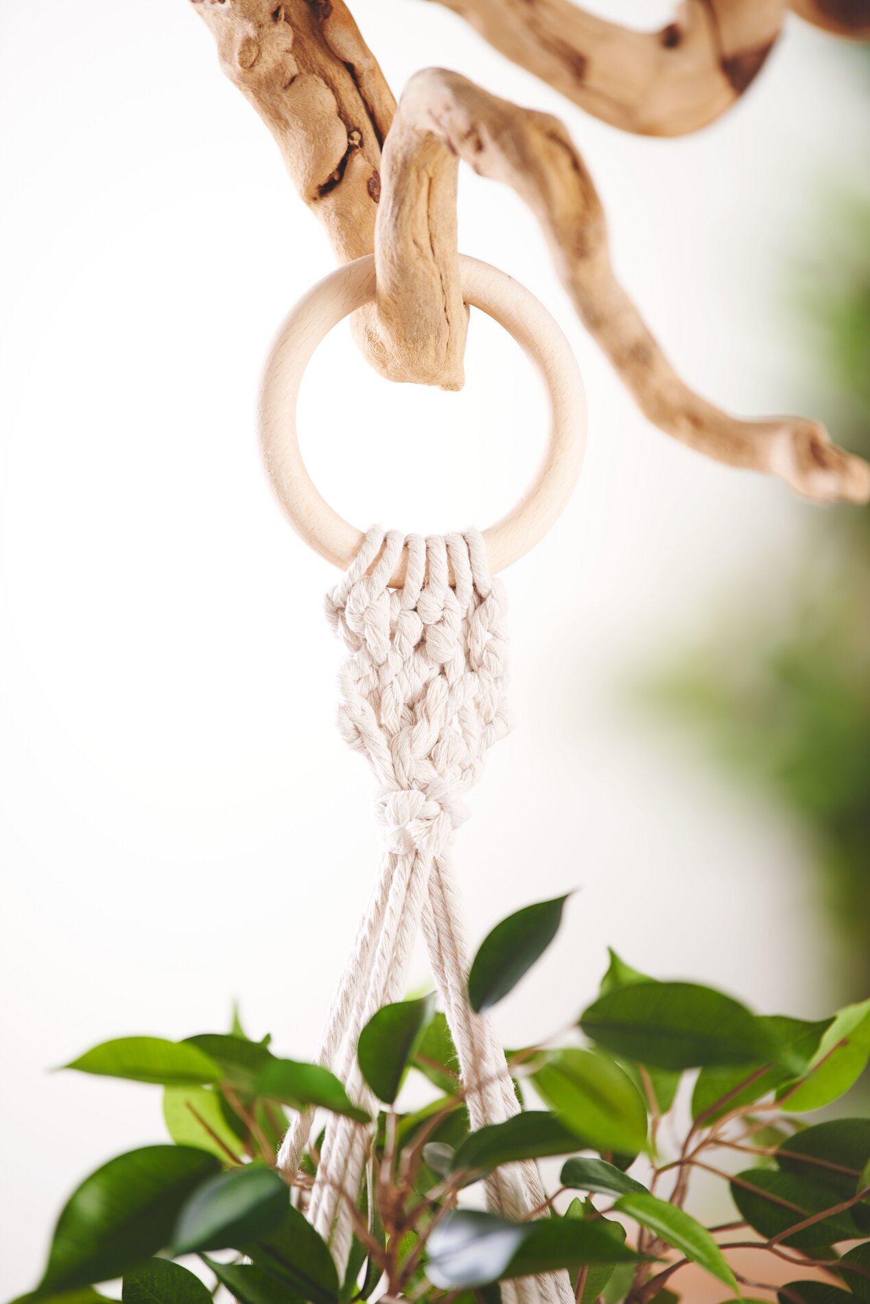 Pull it halfway through the wooden ring with approx. Ø 10 cm and knot it as follows