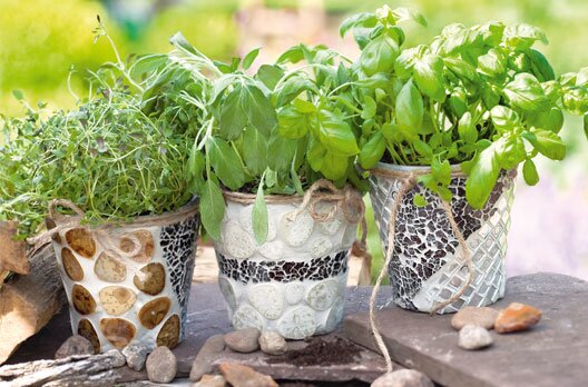 Your little "herb garden" simply made by yourself. In Mediterranean style, the pots are twice as good. They are not only a real eye-catcher on the windowsill or in the garden, but always offer you fresh herbs for your cooking creations.