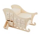 The VBS Advent Calendar "sledge" is made of plywood and has a length of about 37 cm, width about 19 cm and height about 25 cm. The front part of the drawers is in the format 5 x 5 cm. The drawers have a length of 9 cm, width approx. 4.3 cm and height approx. 4.4 cm. The 24 drawers are located on the two long sides of the slide, 12 pieces each.