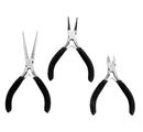 The set consists of a round nose pliers for bending wire and making eyelets and curves, a flat nose pliers for holding and fastening fasteners and a side cutter for shortening and cutting wires.