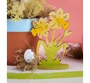 These wonderful VBS Bunnies and daffodils are a set of 3 with a flower motif about 5.3 cm x 8 cm, a standing bun about 3.5 cm x 7 cm and a bunny on an egg about 4 cm x 7.3 cm. The material is high quality poplar plywood.