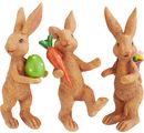 Measuring between 7.5 and 9.5 cm, the bunnies are perfect for a wide variety of decorative ideas. The bunny with the Easter egg, the one with the large carrot and the third carrying a basket full of colourful Easter eggs will add a colourful accent to your windowsill or dresser. Use them on a beautifully designed tray next to tealight holders and flowers to create an inviting atmosphere. Or incorporate them into an Easter wreath or arrangement for a truly outstanding decorative experience.