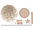 A wonderful VBS craft set "Fir tree" in sizes small (approx. 22, 5 cm, Ø 9.5 cm), medium (approx. 31 cm, Ø 12.5 cm) and large (approx. 46 cm, Ø 18 cm) with 15, 19 and 27 parts. This plug-in motif is composed of a wooden base, wooden snowflakes of different sizes, a metal rod and connectors. These are quite simply put together by you and possibly. fixed with a little craft glue.