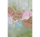 Beautiful VBSegg-Decoration pendant, flat with a content of 10 pieces. The size of the Decoration pendant is about width 7.5 cm, height 10 cm and thickness 1.3 cm. The material is papier-maché. At the top of the egg is a hanging band made of Jute yarn.
