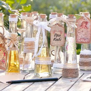 Wonderful and ideal for bottling homemade liqueurs and oils. But also bath salts, vacation sand, secret messages or gift certificates can be super stored in a Geolini bottle and give away. Decorated with ribbons, labels and sprinkles, a beautiful gift idea is quickly ready.