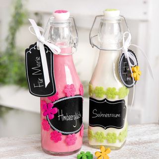 The glass bottles have a plop closure and can be filled as desired.