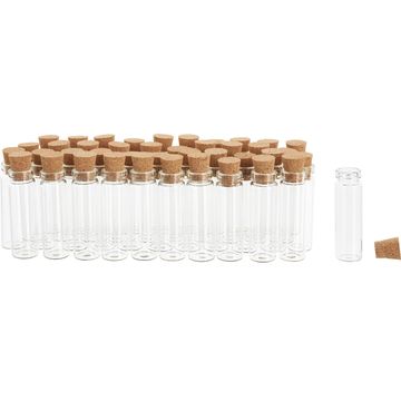 VBS XXL Glass tubes with cork "7 cm" as a value pack with 24 pieces. The tubes are made of clear glass, approx. 7 cm high with a Ø of approx. 2 cm. The inner Ø of the opening is approx. 1.2 cm. Great for filling and decorating.