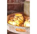 The lantern glass has a height of about 7.0 cm and a diameter of about 7.5 cm. Over the metal bracket they can be decorated very easily. Fill it for Wind light example with decorative stones or Sand and place a candle in the middle of the lantern.