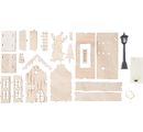The individual plywood parts give you the freedom to let your creativity run wild. Whether with colours, colour pastes, glitter or paper - design your own individual house of lights. Thanks to the plug-in system, assembly is child's play and you can use handicraft glue (not included) for stability.