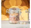 The small jars are great for giving away small presents or for storing buttons, rubber bands and many other small items. The perfect souvenir for the next invitation to a friend's house. Transform the jars into enchanting unique pieces with the napkin technique, glass painting paint or a handlettering. Ribbon and scatter pieces add beautiful accents.