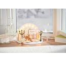 The light archis ideal for seasonal decorations. With this LLight archyou can put your decoration in the right light twice. The back wall is particularly suitable for designing with Napkins of the decoupage technique and can be illuminated with a 10er Chain of lights to the 10 holes. This should be fixed on the backside with a small hot glue dot. In addition, there are cut-outs on the base plate for 4 tea light glasses, which provide an atmospheric light and make your decoration shine.