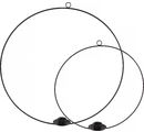 Versatile VBS metal rings "Moora" in round for one stick candle each. The rings have a Ø of approx. 28 cm and approx. 38 cm with a candle spout suitable for stick candles with a Ø of up to approx. 2.4 cm is suitable. The height of the grommet is approx. 1.7 cm and the drop catcher has a Ø of approx. 5.7 cm. There is also an eyelet for hanging with a Ø of approx. 1.2 cm present.