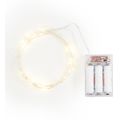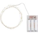 Warm white, 30 LEDs in drop form, battery operated (3x1.5 AA - not included), cable made of silver wire