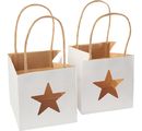 Christmas VBS Paper bag "Star" in a set of 2 with a size of approx. 12 x 12 x 12 cm and viewing window with rigid plastic film in the shape of a star with a Ø of approx. 7 cm. The sturdy carrying handles have a length of approx. 24.5 cm.