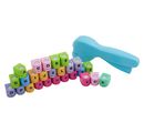 A punchVBS pliers with 26 punching motifs, letters. The punch motifs are interchangeable and are inserted individually into the punch handle