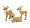 This set of 3 VBS deer "Konin" is covered with a synthetic fur. The set consists of 1 lying roe deer with a size of approx. L 7.3 cm x W 3 cm x H 6 cm and two standing roe deer with a size of L 7 cm x W 2.7 x H 10 and L 7 cm x W 2 cm x H 9.5 cm