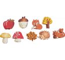Cute VBS Scatter decoration "Sneem" made of plywood with a size of approx. 3.2 - 3.9 cm and a thickness of approx. 2.6 mm. The different autumnal motifs are decorated on one side. The package contains a total of 18 pieces. The assortment may differ from the picture.