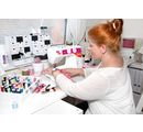Inside the case there is an insert plate and wooden pens. These are inserted into the pre-drilled holes of the insert plate and thus provide space for a maximum of 64 bobbins of sewing thread .
