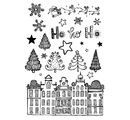 The unique silicone stamps "Häuserreihe" from the house VBS are a mixture of 23 christmas motives with a size of 0,5 cm to 13,5 cm. The stamp set consists of a great row of houses of pretty little town houses, various snowflakes, stars, fir trees and the lettering - HO HO HO -.