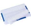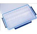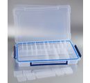 VBS Sorting box with variable division and a size of approx. 35 x 21.5 x 5 cm. The division can be designed variably by you. In the box itself, two partitions are permanently installed. The size of the compartments is approx. 4.3 cm x 32 cm. The third compartment has a size of approx. 10 cm x 32 cm. There are 5 large (10 x 4.6 cm) and 20 small (4.3 x 4.6 cm) partitions in the box.