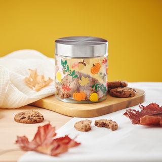 This storage jar from VBShas a screw cap in stainless steel look and a filling capacity of 700 ml. The glass is 12 cm high, with a diameter of 11 cm.