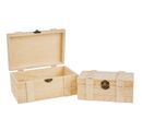Great treasureVBS chests set of 2 from wood, high quality processed. The size of the two chests is approx. length 20 cm x width 13.5 cm x height 8.5 cm and length 17 cm x width 9.5 cm x height 7.2 cm. The chests have a first-class metal closure and are made of pine plywood.