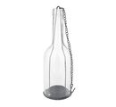 The clear glass VBS Wind light- bottle has a height of approx. 22 cm and a base diameter of approx. 7.5 cm. Inside the bottle is a metal frame on which a tea light is placed in the lower part. The bottle is hung on a metal chain, which is about 22.5 cm long.
