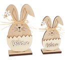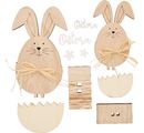This set consists of two bunnies measuring 6.5 x 3.5 x 12.5 cm and 8.5 x 4 x 16.5 cm, made from veneered plywood. They are supplied disassembled and are easy to assemble using handicraft glue (not included). The decorative "eggshell" gives you creative freedom: use the side already covered with motif paper or modify the untreated back to suit your taste.