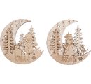 VBS Wooden decoration pendant "Half moon with Santa and Snowy", set of 2