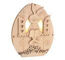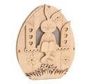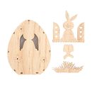 Discover the VBS Wooden egg with LED "Bunny in the window" and be inspired by the unique decoration. Measuring 14 cm long and 18 cm high, the egg is a real eye-catcher and is perfect as a gift idea or decoration. The egg is made of plywood and is unpainted. The motif shows a rabbit sitting in a window. The window is covered with foil. You will need 2 AAA batteries (not included) for the LED lighting. The pre-drawn lines on the wood make painting easier. There are 3 decorative parts included, which are glued on with handicraft glue (not included).