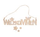 Greet your guests with the VBS Wooden hanger "Willkommen" and create a unique and personal welcome greeting. The hanger is made of poplar plywood and is 7 cm high and 29 cm long. It is decorated on one side and consists of the lettering "Willkommen" and three small flowers, which are enclosed loose and can be glued on with handicraft glue (not included).