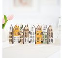 With the VBS Wooden silhouette "Skyline", you can bring a piece of city flair into your home. The 47 cm wide and 15 cm high wood decoration consists of 8 houses with windows and offers you great design options. The individual houses are connected with hinges. The material is veneered plywood. Design the great house front with craft paints, effect paints, Chalky Color, napkins and decoupage technique or other techniques - just as you wish.