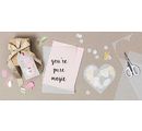 From this great Vellum paper the dots can be used to design the most diverse and suitable craft projects for every occasion. There can be stars, hearts or Decoration pendantfilled with confetti or small punched out scatter pieces or you can label the Vellum paper with sayings and messages in handlettering style