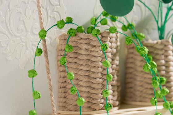 Cut a few pieces of the paper wire, paint them with green paint from the marker pen and glue the wire to the paper leaves as "plant stems".